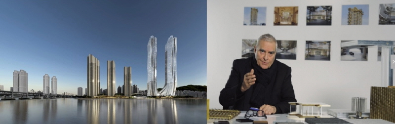 시행사는 GS건설( 브랜드: 그랑자이 더 비치) 과 건축 디자인은 프랑스 국립도서관과 독일 베를린올림픽 벨로드롬 등을 설계한 프랑스의 건축가 도미니크 페로가 맡는다고 합니다.