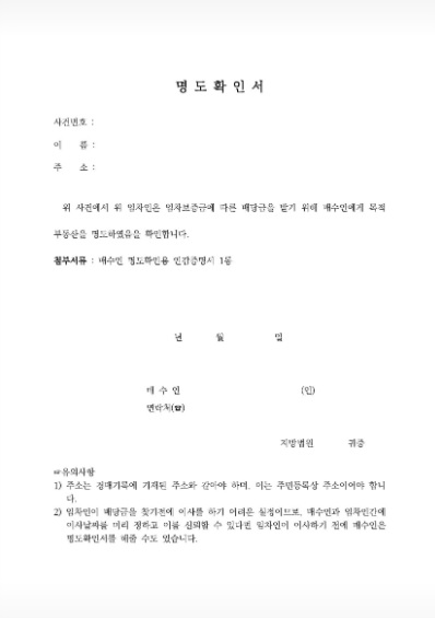 명도확인서 양식은 법원의 경매계에 비치되어 있다.